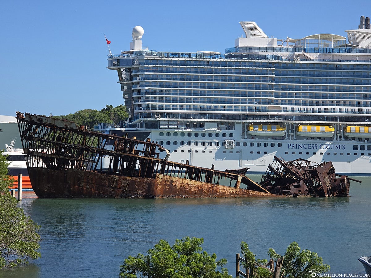 Einer der ungewöhnlichsten Stopps unseres Tagesausflugs war das Schiffswrack der M-Alexand in Dixon Cove. Das halb versunkene Frachtschiff liegt nur wenige Meter vor der Küste und ist bereits vom Straßenrand aus gut sichtbar. Zusammen mit dem leuchtend türkisfarbenen Wasser und der üppig grünen Küstenlandschaft ist das rostige Wrack ein super Fotomotiv. Die M-Alexand strandete im Jahr 1981 vor Dixon Cove, nachdem sie während schwerer See manövrierunfähig geworden war. Anstatt das Schiff vollständig zu bergen, blieb es an Ort und Stelle zurück und wurde im Laufe der Zeit zu einem festen Bestandteil der Küstenlandschaft. Zudem ist ist die M-Alexand mit einer Kapazität von 4.064 Tonnen das größte Schiffswrack in den Gewässern rund um Roatán.
